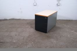 Stijlvol en Functioneel Ladeblok – Ahrend, Zilvergrijs met antraciete voorkant met Ahorn Topblad, 4 Lades, Verrijdbaar, Tweedehands