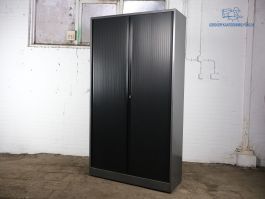 Gebruikte Rolkast – Antraciet Metaal met Zwarte Kunststof Roldeuren, 195x120x45 cm