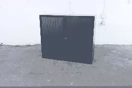 Deze tweedehands ASPA roldeurkast in zwarte kleur biedt een uitstekende oplossing voor het ordenen van je kantoor of werkruimte. Deze kaste heeft een kleine schade op de linker deur (zie foto). De kast is 105 cm hoog en 120 cm breed, waardoor hij perfect past in zowel kleine als middelgrote ruimtes. Met 2 legborden biedt de kast voldoende opbergruimte voor documenten, kantoorbenodigdheden of andere items die je netjes en overzichtelijk wilt opbergen.