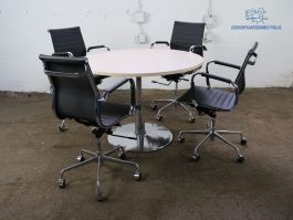 Dit tweedehands bijzettafeltje is een veelzijdige en stijlvolle aanvulling voor zowel wachtruimtes als woonkamers. Dankzij het compacte formaat en het strakke ontwerp is deze tafel ideaal te gebruiken als lectuurtafel in een wachtruimte, maar ook in huis zal hij zeker niet misstaan. Het tafelblad is verkrijgbaar in diverse kleuren en materialen uit ons ruime assortiment, zodat u het geheel perfect kunt afstemmen op uw interieurwensen. Houd hierbij rekening met een langere levertijd bij het kiezen van een aangepaste kleur.