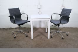 Op zoek naar een functioneel én stijlvol bijzettafeltje voor uw kantoor, wachtruimte of kantine? Deze tweedehands bijzettafel is een veelzijdige keuze met een strak en tijdloos ontwerp. Dankzij het vierkante witte blad en de subtiele metalen accenten combineert deze tafel eenvoud met een moderne uitstraling, passend binnen uiteenlopende interieurstijlen.