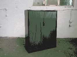 Berg uw spullen netjes en overzichtelijk op in deze gebruikte roldeurkast van het merk Brink. Deze tweedehands kast is antarciet van kleur met een wit topblad. Deze gebruikte kast is voorzien van 2 legborden. De afmetingen zijn 138 cm hoog, 120 cm breed en 45 cm diep. Standaard leveren wij deze kast zonder sleutels, maar deze kunnen we natuurlijk wel voor u bijbestellen!