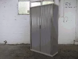 U kunt uw spullen netjes en veilig opbergen in deze gebruikte roldeurkast van het merk Brink. De kast is van metaal, met kunststofdeuren en is grijs/ creme van kleur. Deze gebruikte kast is voorzien van 4 legborden. De afmetingen van de kast zijn 196 cm hoog, 130 cm breed en 54 cm diep. Deze kast wordt standaart geleverd zonder sleutel. Deze kunnen wij voor u bij bestellen.
