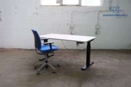 Dit zo goed als nieuwe elektrisch verstelbare bureau biedt een ideale werkplek voor iedereen die op zoek is naar comfort, flexibiliteit en stijl. Het bureau is ontworpen om een gezonde werkhouding te bevorderen door de mogelijkheid om de hoogte eenvoudig aan te passen, zowel zittend als staand werken wordt daarmee mogelijk. Het strakke ontwerp met een helder hout blad op een zwart frame maakt het bureau een stijlvolle toevoeging voor elk kantoor of werkruimte.