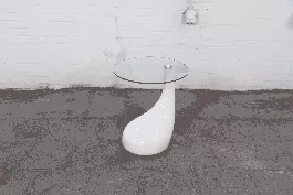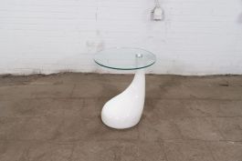 Design | Bijzettafeltje | Tweedehands | Hoogglans wit | Glas blad | OT302