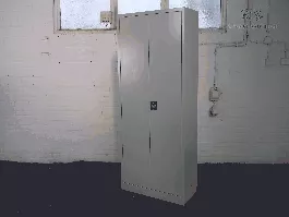 In deze tweedehands draaideurkast kunt u netjes en veilig uw spullen opbergen. De kast is van metaal en grijs van kleur, deze is voorzien van 2 legborden. De afmetingen zijn 180 cm hoog, 80 cm breed en 38 cm diep. Deze gebruikte draaideurkast wordt standaard geleverd zonder sleutel, deze kunnen wij uiteraard wel voor u bij bestellen.