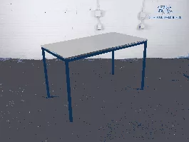 Deze tweedehands kantinetafel is voorzien van een kersen blad op een zwart frame. De afmetingen zijn 120 cm breed, 80 cm diep en 76 cm hoog.