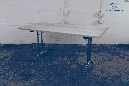 Deze tweedehands klaptafel heeft een erg nette uitstraling en is dan ook een echte verrijking in elke kantine. De tafel is voorzien van een halifax eiken blad en een verchroomd frame. De afmetingen van deze kantinetafel zijn 76 cm hoog, 160 cm breed en 80 cm diep.