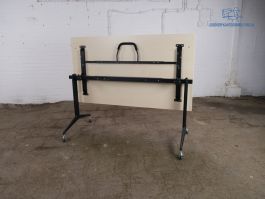 Deze zo goed als nieuwe klaptafel heeft een hele nette uitstraling! De tafel is voorzien van een ahorn blad en deze rust op een zwart frame. De tafel is ook gemakkelijk verrijdbaar. De afmetingen zijn 160 cm breed en 80 cm diep.