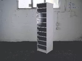 U kunt uw laptop netjes en veilig opbergen in deze tweedehands laptoplocker. De laptopkast is wit van kleur en is voorzien van 10 vakken met de blauwe deuren. De afmetingen zijn 181 cm hoog, 50 cm breed en 50 cm diep. De gebruikte locker verkeert in zeer nette staat en het wordt geleverd met sleutels.