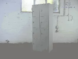 U kunt uw spullen netjes en veilig opbergen in deze tweedehands lockerkast. De gebruikte kast is van grijs metaal en heeft 8 metalen deurtjes. De kast bestaat uit 2 kolommen. . De afmetingen van de gehele tweedehands lockerkast zijn 190 cm hoog, 80 cm breed en 50 cm diep. Deze heeft hangsloten (val grendel). De kast is uitgevoerd op pootjes en verkeert in goede staat.