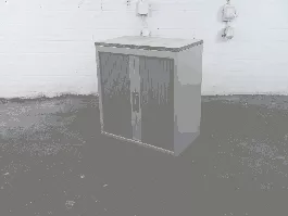 U kunt uw spullen netjes en veilig opbergen in deze tweedehands roldeurkast van het merk Palmberg. De kast is zilvergrijs van kleur met een havanna topblad erop en heeft 1 legplank. De afmetingen zijn 77 cm hoog, 80 cm breed en 45 cm diep. De gebruikte kast wordt standaard geleverd zonder sleutel, deze kunnen we uiteraard wel voor u bij bestellen.