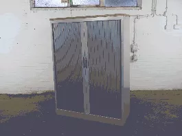 U kunt uw spullen netjes en veilig opbergen in deze tweedehands roldeurkast van het merk Palmberg. De gebruikte kast is zilvergrijs van kleur met een havanna topblad erop, voorzien van 3 legborden. De afmetingen zijn 147 cm hoog, 120 cm breed en 45 cm diep. De kast wordt standaard geleverd zonder sleutel, deze kunnen we uiteraard wel voor u bij bestellen.