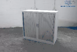 Roldeurkast | Jong gebruikt | Zilvergrijs | 2 legborden | MK293