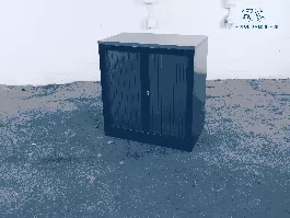 U kunt uw spullen netjes en veilig opbergen in deze tweedehands roldeurkast. De kast is antraciet van kleur met een donkergrijze topblad erop en heeft 1 legbord. De afmetingen zijn 73 cm hoog, 80 cm breed en 45 cm diep. De kast wordt standaard geleverd zonder sleutel, deze kunnen we uiteraard wel voor u bij bestellen.