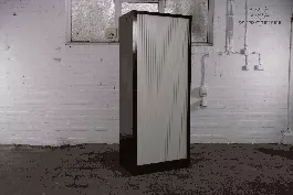 In deze tweedehands roldeurkast kunt u netjes uw spullen opruimen. De kast is zwart van kleur, de deuren en legborden zijn lichtgrijs. De kast is voorzien van 4 legborden. De afmetingen van deze gebruikte kast zijn 195 cm hoog, 80,5 cm breed en 48 cm diep. Deze kast wordt standaard zonder sleutel geleverd, maar uiteraard kunnen we deze wel voor u bijbestellen.