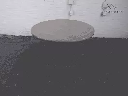Deze tweedehands bijzettafel is voorzien van een rond kersen blad, met daaronder een zwarte poot. Het blad heeft een diameter van 100 cm en de totale hoogte van de tafel is 76 cm.