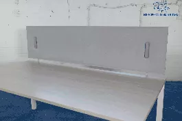 Deze tweedehands scheidingswand is een praktische en stijlvolle oplossing voor het creëren van privacy, het indelen van ruimtes of het dempen van geluid in kantoren, klaslokalen of thuisomgevingen. Dankzij de lichtblauw gestoffeerde afwerking en het neutrale grijze bevestigingssysteem past deze wand moeiteloos in diverse interieurs.