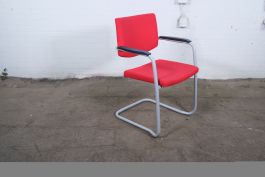 Sitag | Vergaderstoel | Tweedehands | Rood gestoffeerd | Met zwarte armleggers | Zilvergrijs sledeframe | VS363