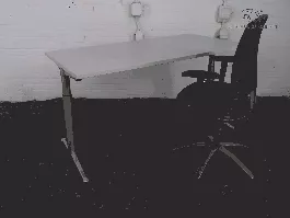 Aan dit tweedehands bureau kunt u prettig aan het werk. Het bureau is handmatig in hoogte verstelbaar en de afmetingen zijn 160 cm breed en 80 cm diep. Het blad is lichtgrijs van kleur en het frame is zilvergrijs.