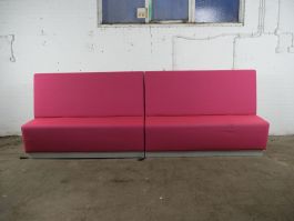 Deze jong gebruikte treinzit van het merk Vepa biedt uw bezoekers een comfortabele en stijlvolle zitplek. De bank is bekleed met zachte stof in een warme frambooskleur en rust op een stevig grijs frame. Met een breedte van 340 cm en een diepte van 73 cm is er voldoende ruimte om ontspannen te zitten.