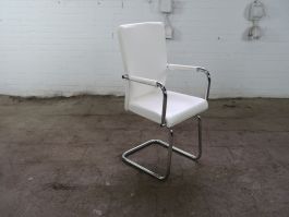 Vergaderstoel | Tweedehands | Verchroomd sledeframe | Wit PU leder | VS337