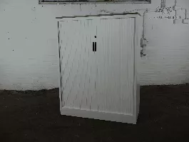 ✔ Roldeuren: De witte kunststof roldeuren schuiven soepel open en dicht, waardoor de kast ruimtebesparend is en ideaal voor werkplekken waar draaideuren minder praktisch zijn.