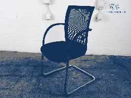 U zit uiterst comfortabel in deze Z.G.A.N. vergaderstoel. De stoel is zwart, met mesh rug en gestoffeerde zitting. Deze vergaderstoel heeft een verchroomd sledeframe met zwarte armleggers en is stapelbaar.